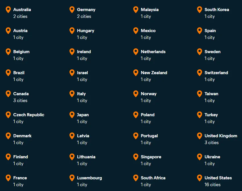 However, compared to industry leaders that boast 60-100 countries and thousands of servers, ASLVPN clearly lacks the breadth and depth of coverage offered by top competitors. This limits flexibility in less common or high-demand regions (such as Africa and South America).