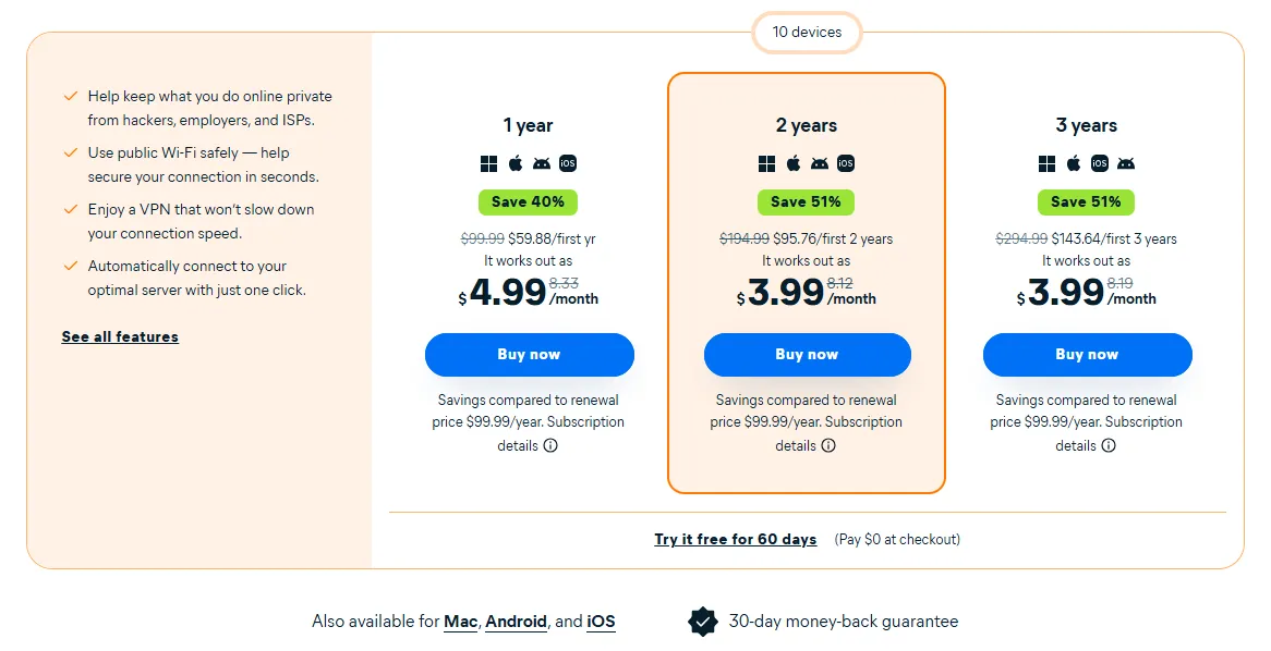 It is developed and maintained by one of the world's most trusted cybersecurity companies. Installation and setup are simple and can be easily completed on Windows, Mac, iOS, or Android devices.