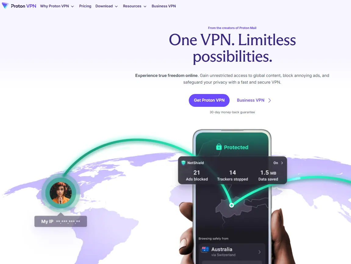 If your priority is absolute anonymity combined with advanced protection, Proton VPN is the top choice: