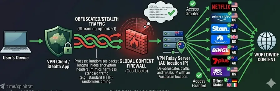 Stable access to Netflix (all regions), Disney+, Hulu, and local 'Stan'. Supports 4K/8K. |