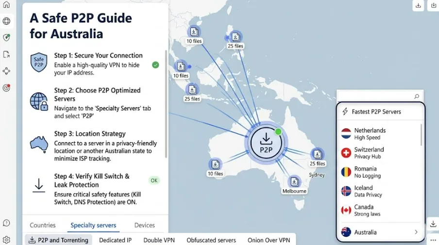 For many Australians, a VPN is primarily a tool for safe P2P file sharing. In 2026, the risk of receiving "Copyright Infringement" notices or having your connection throttled by NBN providers during large downloads is higher than ever. Here is how to ensure your torrenting is both fast and anonymous.