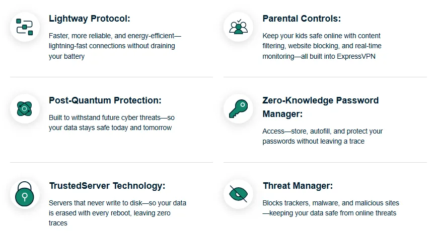 ExpressVPN's security features meet military-grade standards and lead the industry with its proprietary technology.