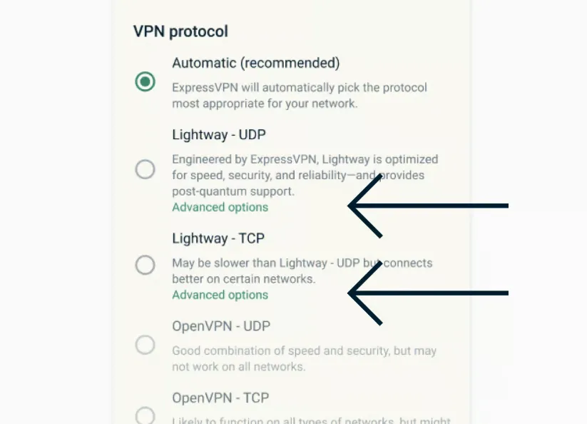 Change Protocol: Try switching the VPN protocol in the App settings from Lightway to OpenVPN (TCP) or OpenVPN (UDP). In regions with strict network restrictions (like China), protocol switching often resolves connection issues.