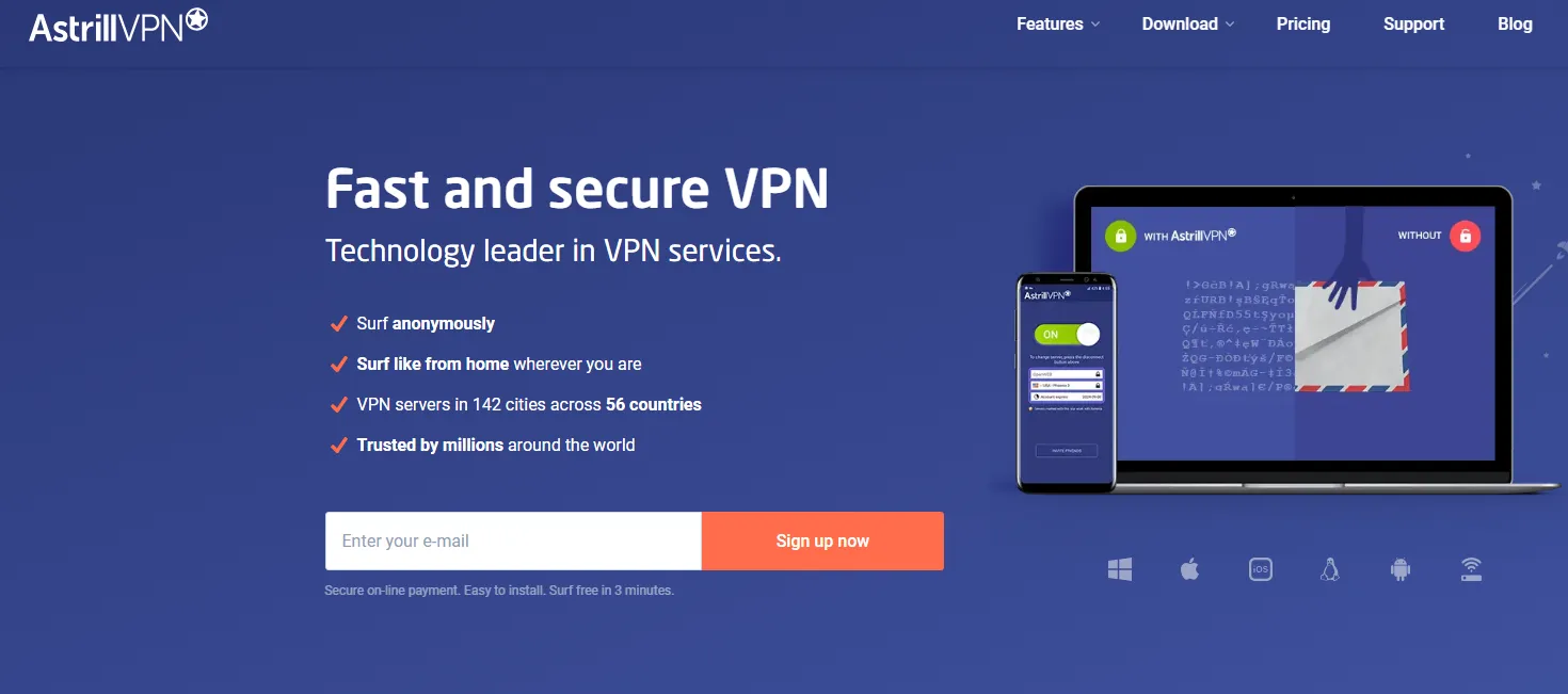 Cons: Connection speeds may vary more than premium providers like Astrill.
