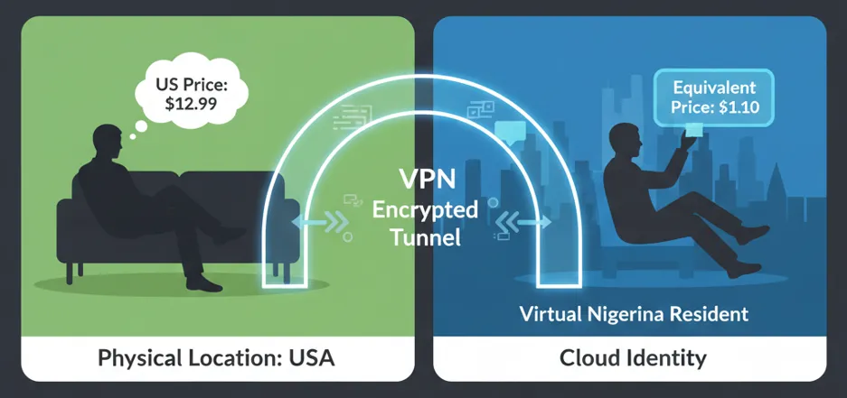 This guide explains how to "relocate" your digital footprint to Nigeria, India, or Egypt to unlock 90% discounts.