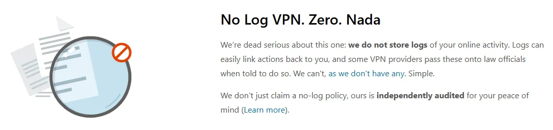 Strict Zero-Logs: No activity, timestamps, or IP logging. 2025-2026 independent audit confirmed full transparency. |