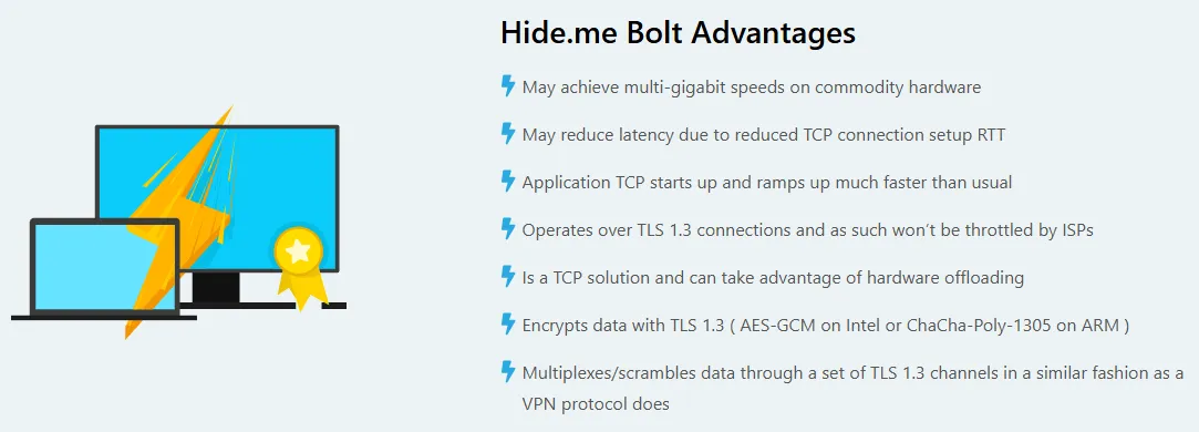 Bolt Engine: A proprietary speed enhancer that outperforms standard protocols on throttled networks.