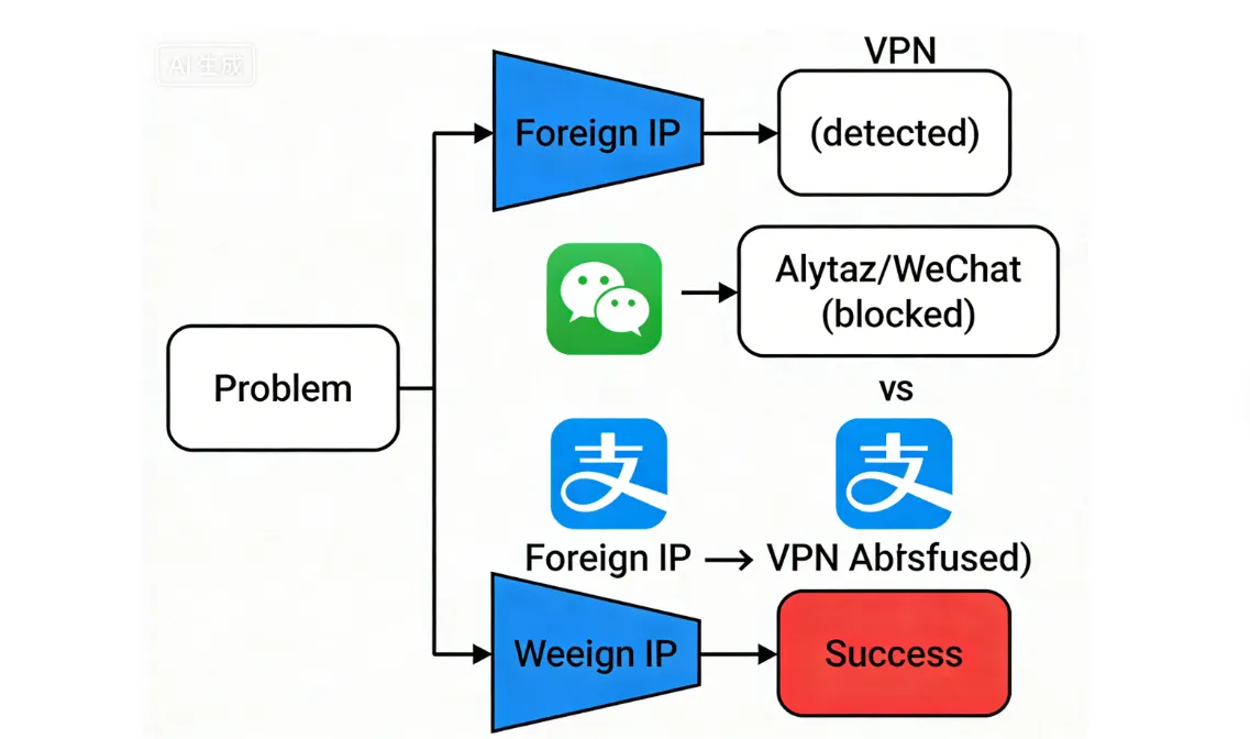A: Chinese financial and social platforms often detect virtual IP addresses (common for VPNs) and flag them as suspicious or high-risk activity, especially if you recently connected from abroad. This can trigger account lockouts or require re-verification via a mainland Chinese phone number, as detailed in Section VIII.