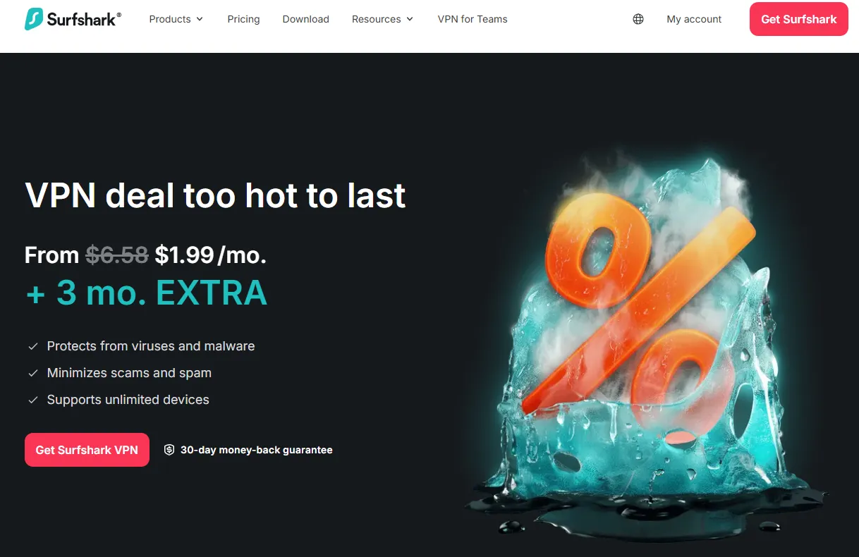 High Value-for-Money: Surfshark's average monthly price is highly competitive, with deals often starting around $1.99/month (for the 2 years + 3 months extra plan), making it an ideal choice for users who require unlimited device connections.