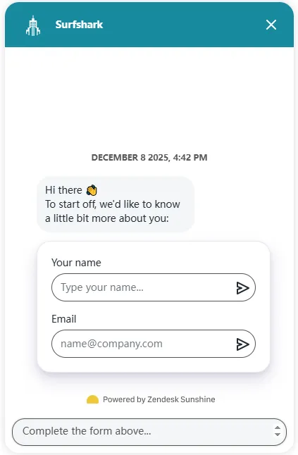 Live Chat: Locate the 24/7 Live Chat button. Live Chat is the fastest and most efficient communication method on the official website, with agents usually confirming the refund within minutes. Surfshark's support (via Live Chat and email) also offers Chinese-language service (typically through timely machine translation).