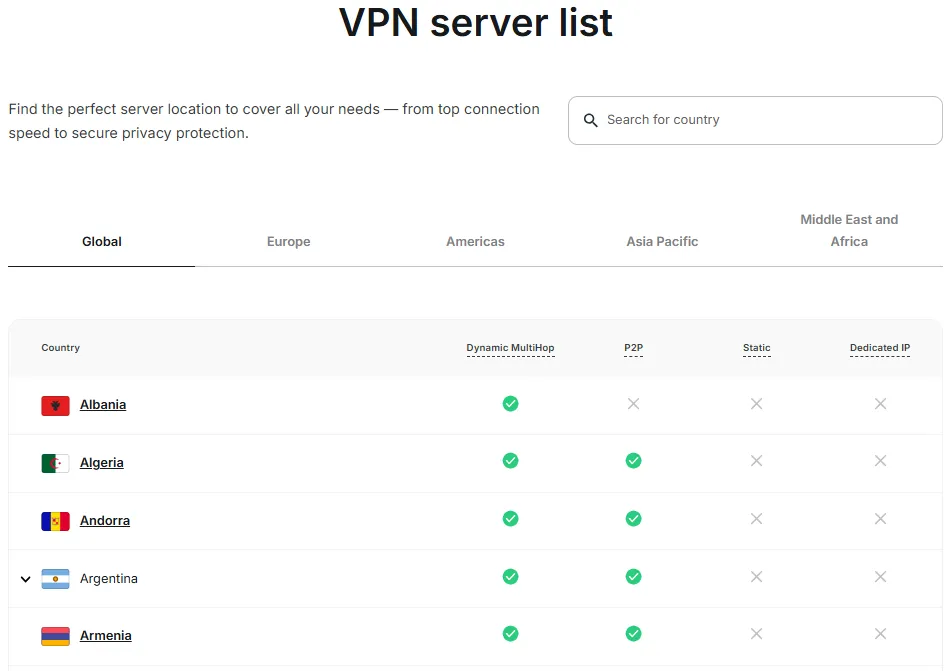 Server Network Breadth: Surfshark boasts over 3,200 servers covering 100 countries/regions, providing ample options globally to ensure you can find a fast, low-latency connection wherever you are.