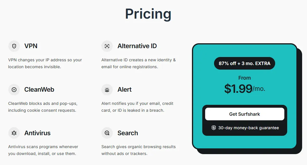 We strongly recommend Surfshark's 30-day money-back guarantee over the free VPN services flooding the market.