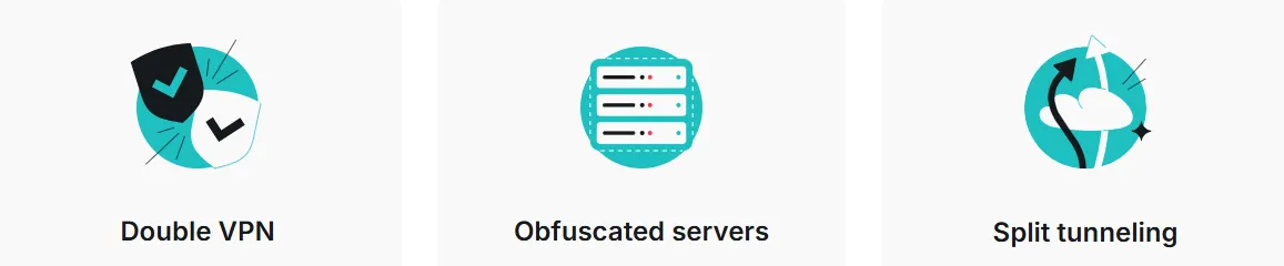 MultiHop (Double VPN): Allows your traffic to be routed and double-encrypted through two different VPN servers, providing an extra layer of security.