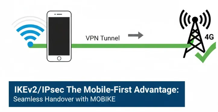 - IP Address Agility: When a mobile device changes networks, it typically gets a new IP address. Without MOBIKE, the VPN connection would drop because the original IP address used to establish the tunnel is no longer valid.