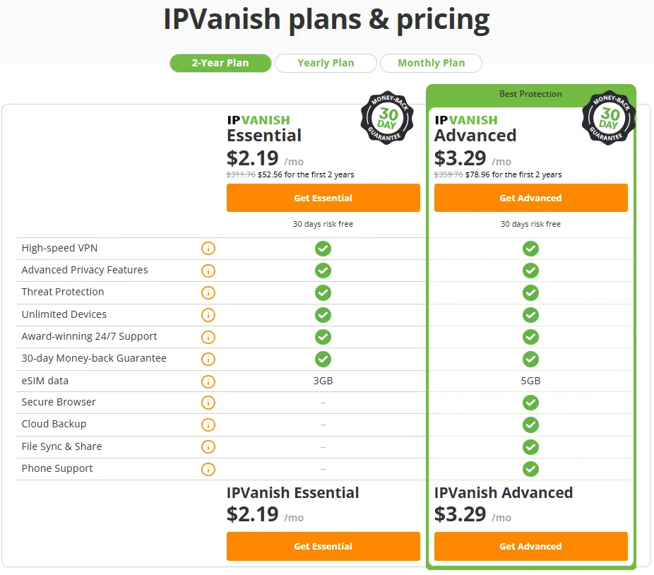IPVanish offers three subscription options: monthly, annual, and a 2-year long-term plan.