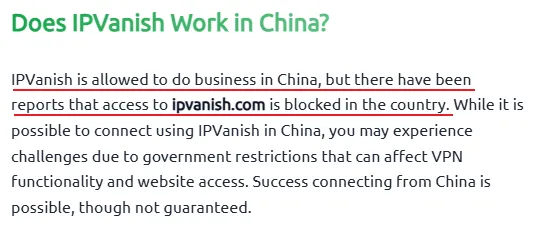 Customer Service Confirmation: The IPVanish customer support team cannot guarantee the service's stable operation in highly network-restricted countries like China, Russia, or Iran.