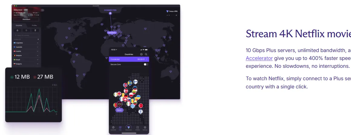 The Streamer and P2P User: Thanks to the VPN Accelerator maintaining high speeds over long distances and full support for Port Forwarding, Proton VPN provides fast, reliable, and secure access for both 4K streaming and high-volume torrenting.
