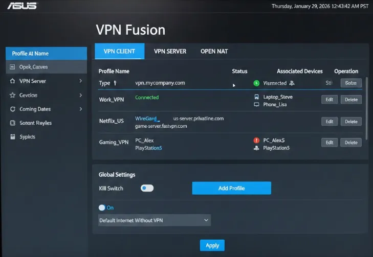 3. How to Apply the 1280 Fix: Navigate to your router’s VPN client settings (e.g., VPN Fusion on ASUS) or your PC’s VPN application settings. Locate the MTU or MSS Clamping field and change it from "Auto" or "1500" to 1280. This simple adjustment guarantees your encrypted gaming data passes through any global carrier with 100% integrity, fixing 90% of sudden disconnects and voice lag issues instantly.
