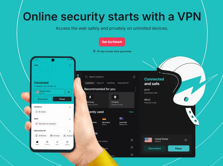 Key Features: CleanWeb (ad blocker), Dynamic MultiHop, and a built-in "NoBorders" mode.