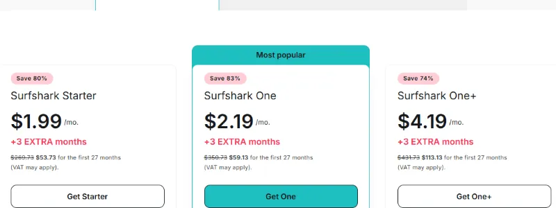 Choose a 2-year plan: This is consistently the most cost-effective option. The Surfshark Starter plan can be as low as $1.99/month for 27 months with current promotions.