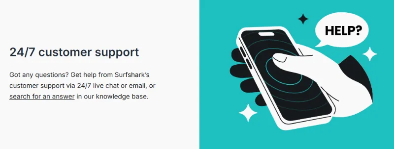 24/7 Live Chat Support: Surfshark provides high-quality customer support available 24/7 via live chat. This ensures users can get immediate assistance, whether they are troubleshooting a connection issue in the middle of the night or setting up the VPN on a complex device like a router.
