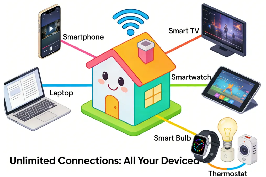 Unlimited Device Connections: Covers entire households at no extra cost. |