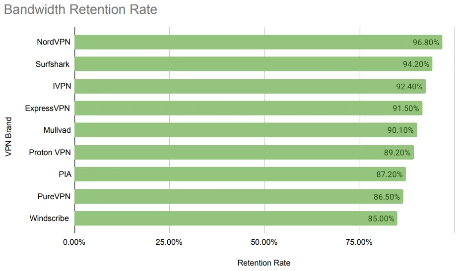Surfshark: Strong 94.2% retention, though slightly higher jitter during MLO switching.