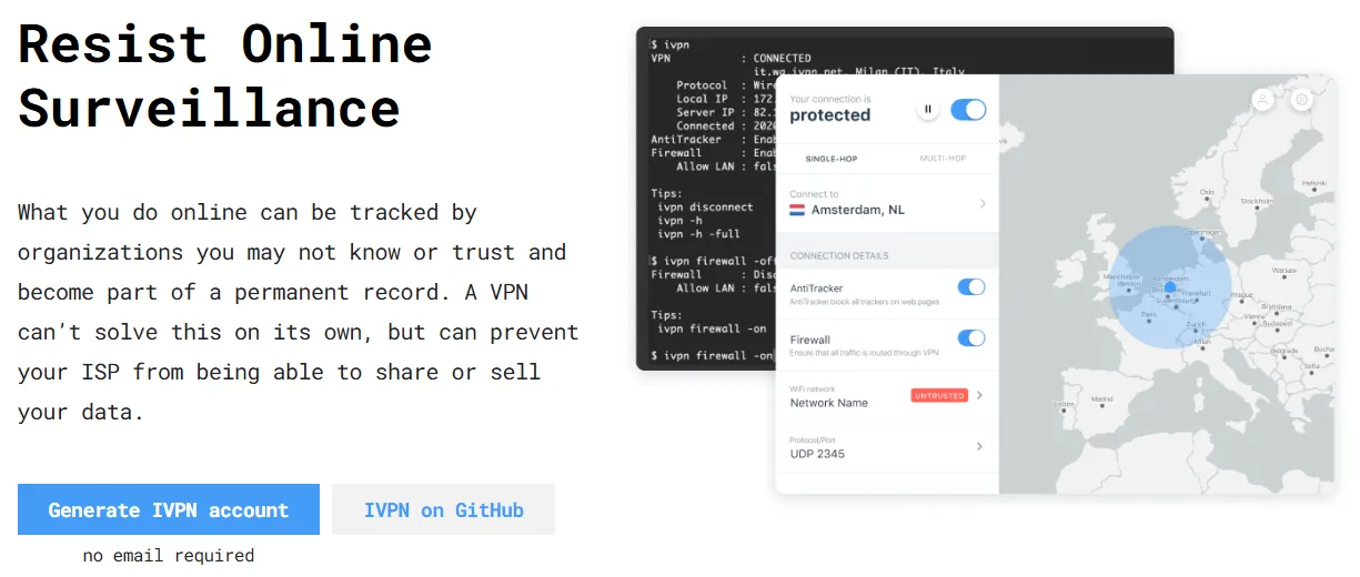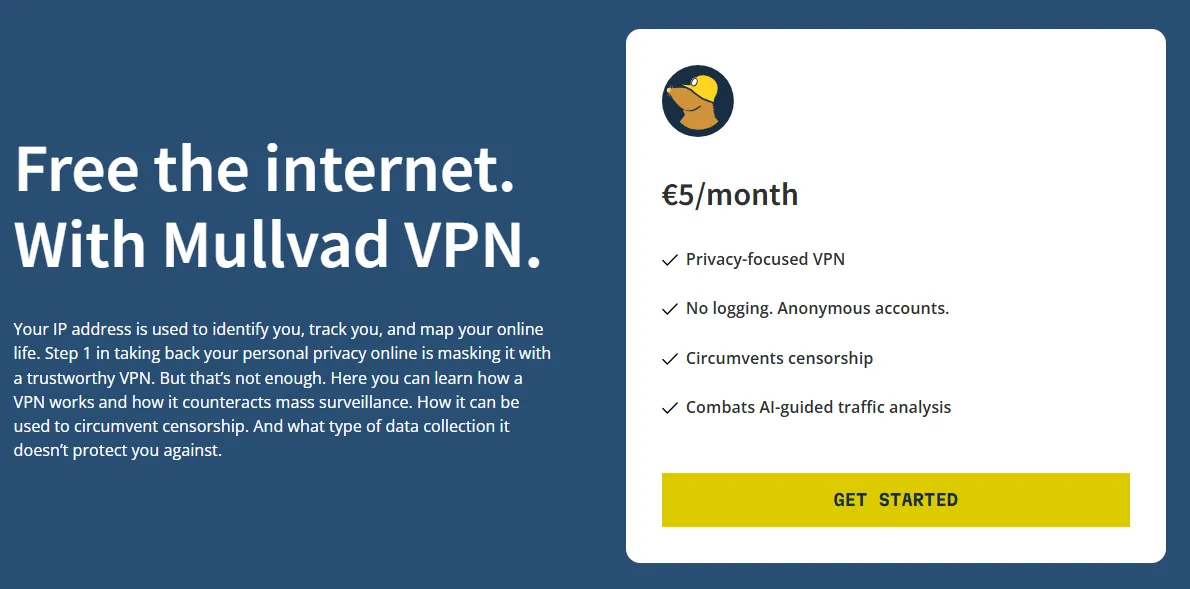 No-account system; high-speed WireGuard; kernel-level ad-blocking; extremely transparent. |