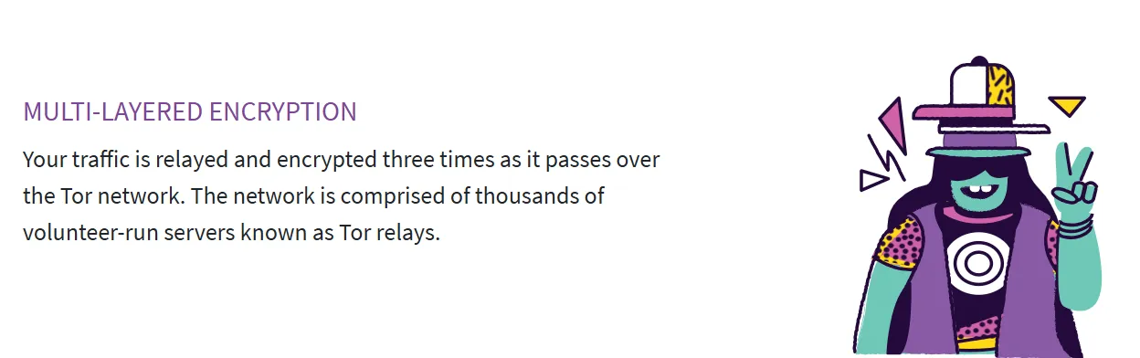 When you make a request using the Tor Browser, your data executes a three-step process before reaching the destination server: