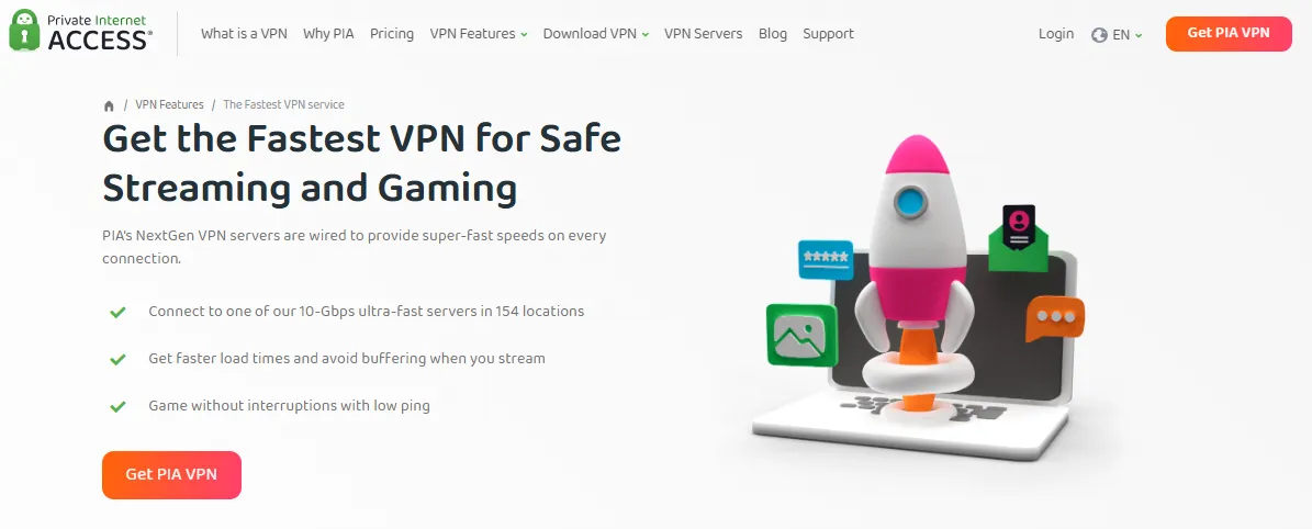 Private Internet Access (PIA) boasts one of the largest server networks on the market, meaning users can find a fast connection point to bypass congestion and poor routing in virtually any geographical location.