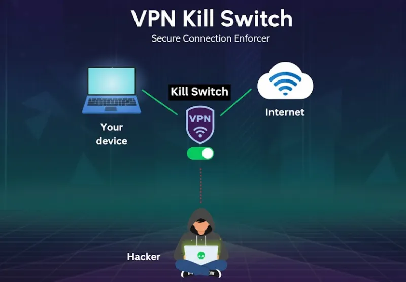 The Kill Switch functions as a vigilant digital guardian: the moment it detects a break in your encrypted tunnel, it instantly shutters all communication channels, ensuring your device goes offline rather than leaking your private data.