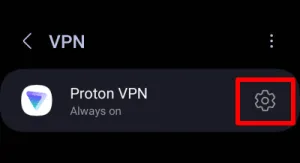 Identify your installed VPN app and tap the Settings icon adjacent to its name(e.g.Proton VPN).